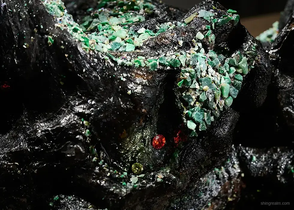 金彈子枯樹樁、翡翠、珍珠、半寶石